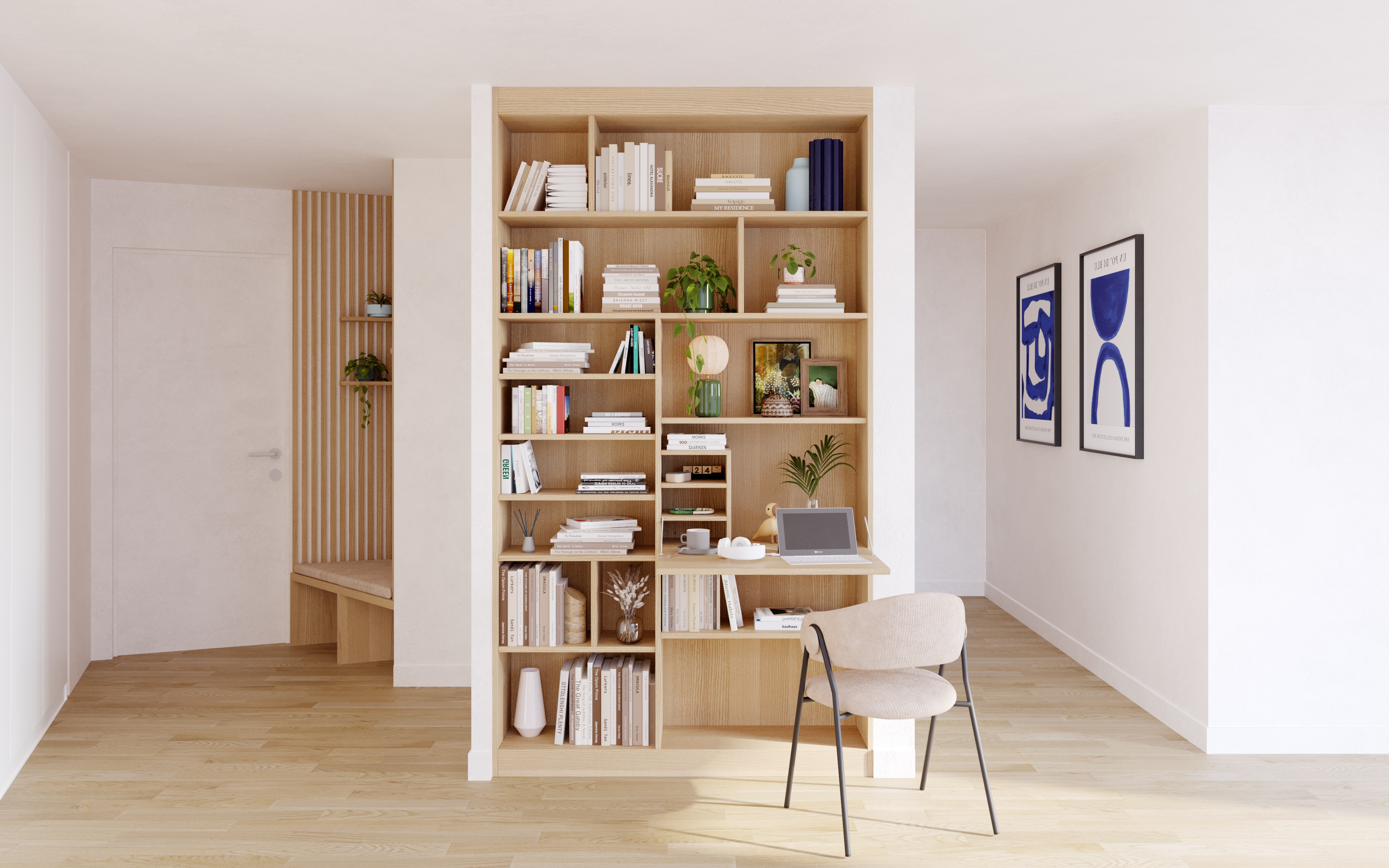 Plans harmonieux et évolutifs avec des aménagements sur mesure pour certains appartements